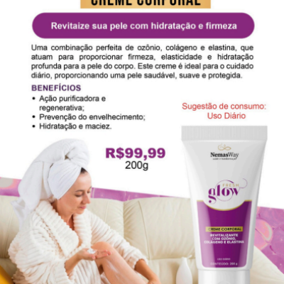 Combinação de ozônio, colágeno e elastina para firmeza, elasticidade e hidratação profunda. Com ação