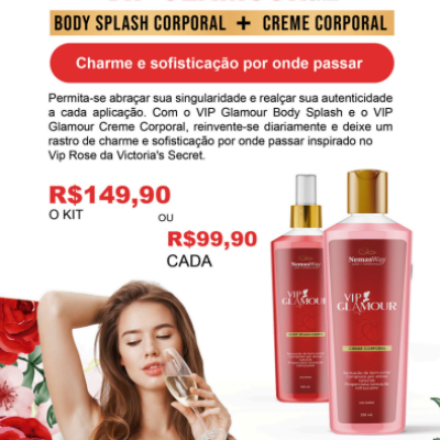 Kit VIP Glamour Body Splash Corporal + Creme Corporal: Inspirado no Vip Rose da Victoria's Secret