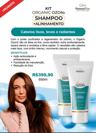 Kit Organic Ozon3 Shampoo + Alinhamento: Com ozônio, nutre e repara danos, resultando em cabelos mai
