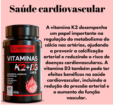 A Vitamina D3 (colecalciferol) é essencial para diversos processos do organismo, enquanto a Vitamina K2 (menaquinona-7) auxilia na distribuição adequada do cálcio no corpo, tornando essa combinação ideal para quem busca um suporte nutricional equilibrado.